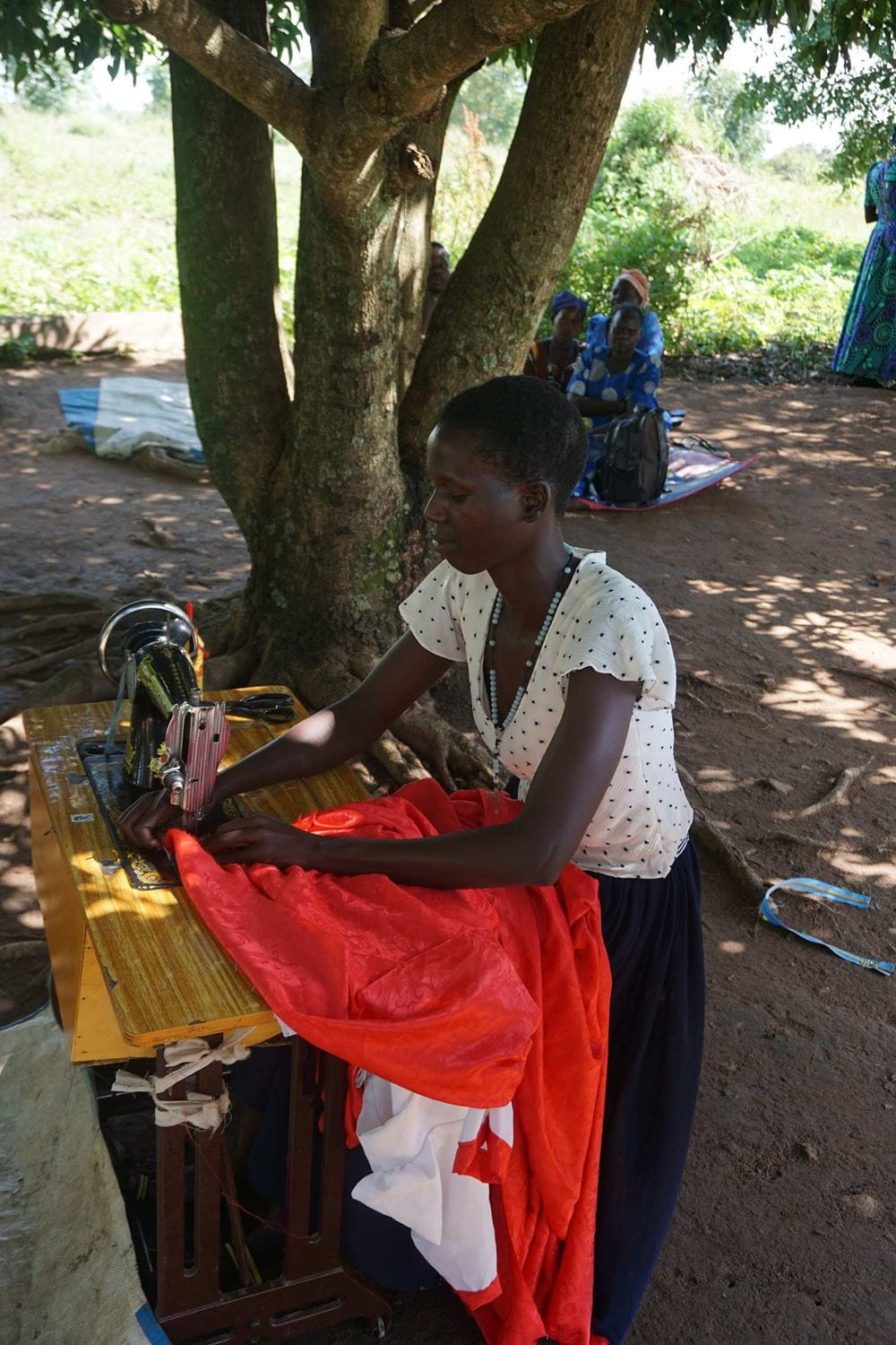 Die 27-jährige Margret ist besonders stolz auf ihren Werdegang, der ohne die Hilfe des Projekts niemals möglich gewesen wäre. Sie hat früh die Schule abgebrochen. Arbeit oder eine Ausbildung hatte sie nicht. Ihre Mama war Mitglied in einer Selbsthilfegruppe und Margret hat dadurch die Chance erhalten, eine Schneider*innenausbildung zu machen. Mit ihrem ersten eigenen Gehalt, das sie als Schneiderin verdient hat, hat sie sich eine Ziege gekauft und anschließend gewinnbringend weiterverkauft. Mit dem Gewinn hat sich Margret einen Stier und erneut eine Ziege gekauft. Die Ziege hat bereits drei Junge zur Welt gebracht, durch deren Verkauf Margret erneut Einkommen generieren konnte. Heute ist sie selbstständig, hat sich mit ihrem Einkommen sogar eine eigene Nähmaschine leisten können und verdient durch den Verkauf ihrer selbstgenähten Kleider und durch Auftragsarbeiten umgerechnet 62 Euro im Monat und kann davon gut leben. Aufgrund all dieser Erfolge ist es Margret nun möglich, ihre Tochter in die Schule zu schicken.