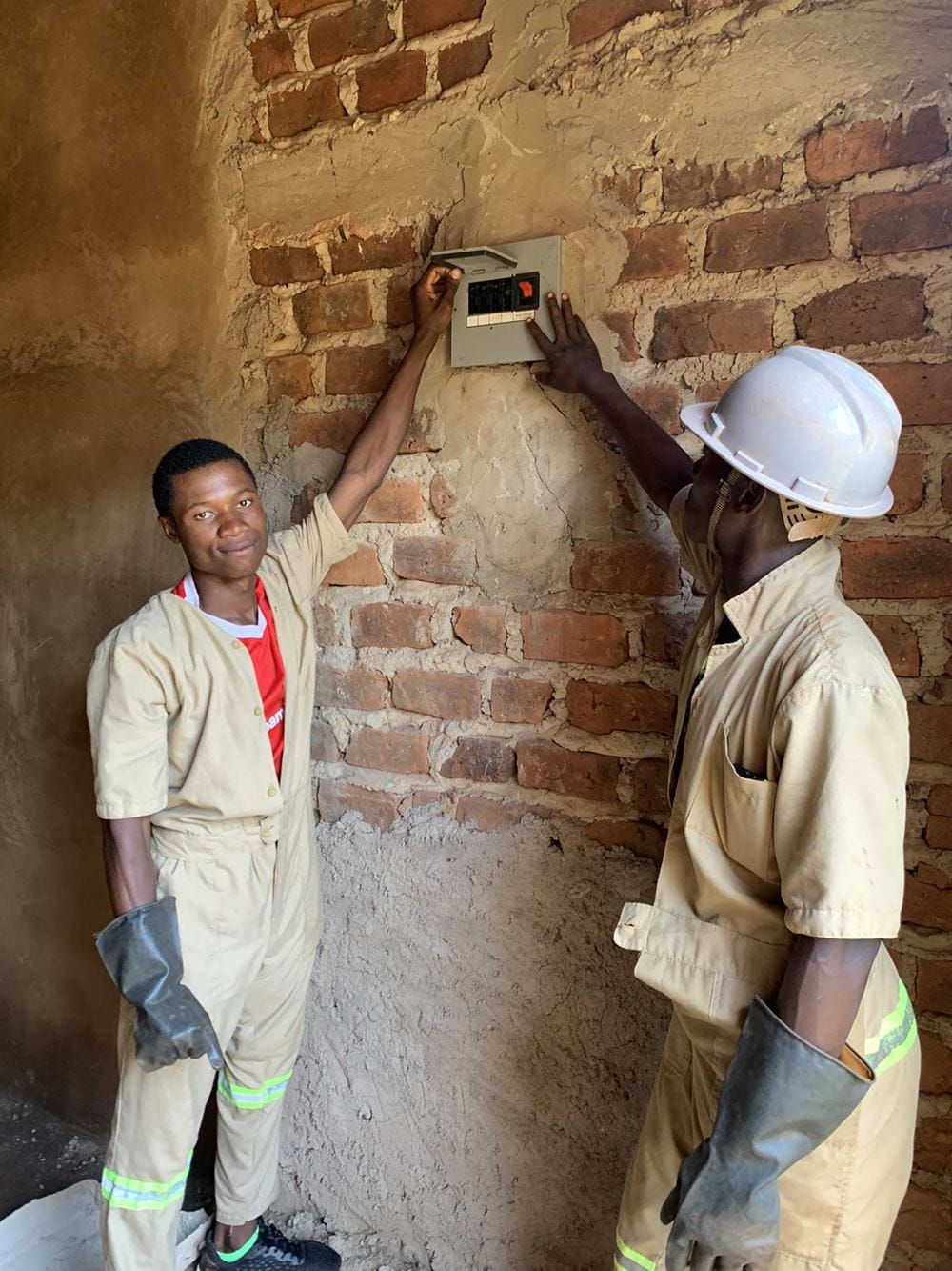 Frank und David entschieden sich dazu, Elektriker zu werden, da vor Ort zwar Strom vorhanden, aber nahezu kein Haus an das Stromnetz angeschlossen ist. Daher gibt es zahlreiche Aufträge für die Beiden, die nun nach und nach die einzelnen Häuser mit einer Stromversorgung ausstatten. Im Kurs lernten sie die richtige Verkabelung von Häusern und die Reparatur von Steckdosen. Die Ausbildung endete im August 2020 und seit September 2020 arbeiten Frank und David gemeinsam als Elektriker. Gestartet haben die Beiden mit Schraubenzieher, einem Phasenprüfer und Handschuhen, "mehr hatten wir damals nicht zur Verfügung". Seitdem haben sie mehr als zehn Häuser neu verkabelt. Sie machen ihre Arbeit gut und werden oft weiterempfohlen. Für ein Haus erhalten sie umgerechnet knapp 75 Euro und im Monat rund 175 Euro. Mit ihren ersten Einnahmen haben sie in ihre Arbeitssicherheit investiert und sich Helme und Sicherheitsschuhe gekauft.