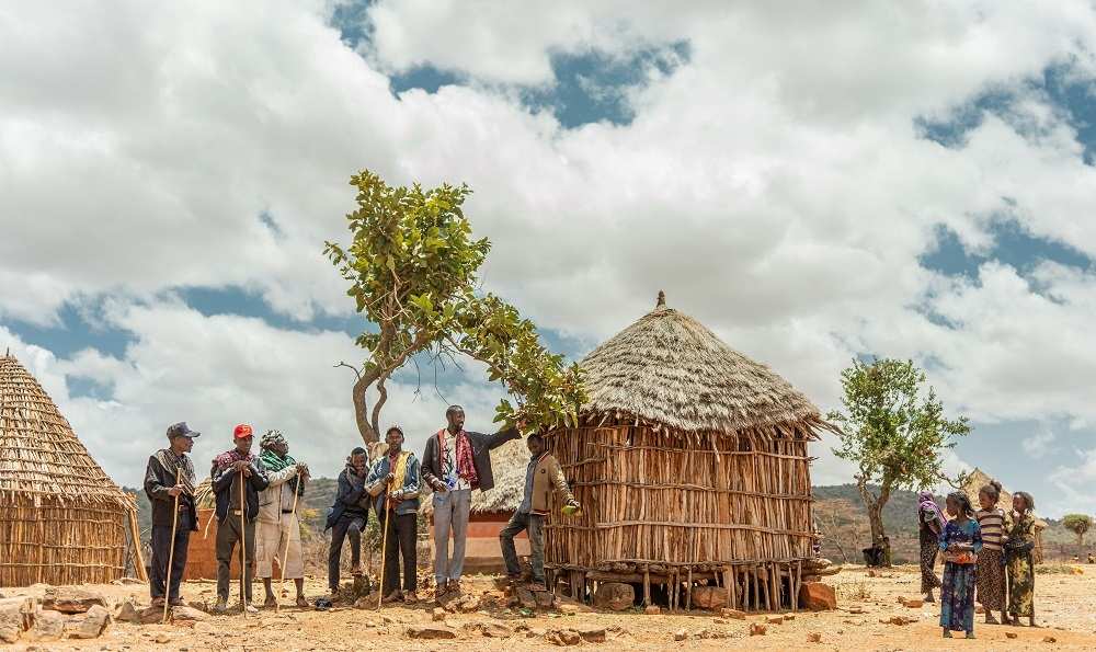Sule, die Frau aus dem Dorf Dikale, ist eine sogenannte Pastoralistin (Hirtin). 13,5 Prozent der äthiopischen Bevölkerung leben und arbeiten auf diese Weise. Sie haben einen festen Wohnsitz, wandern jedoch mit ihren kleinen Herden in den trockensten Regionen des Landes von Weide zu Weide. Immer dorthin, wo gerade etwas frisches Grün gewachsen ist. Das Dorf Dikale, in dem Sule lebt, ist eine afrikanische Lehmhütten-Siedlung in hügeliger Landschaft.