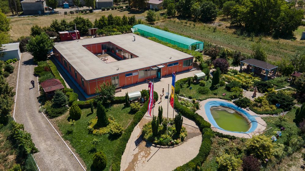 So wie die anderen Kinder geht Lilya jeden Tag in das Zentrum von CONCORDIA Sozialprojekte. In den hellen, freundlichen Räumen ist ein kleiner Speisesaal, ist gibt Computer, eine Mal- und Bastelecke. Im Garten steht ein Trampolin und vor dem Haus ein Schwimmteich, der gerade mit vereinten Kräften gereinigt wird.