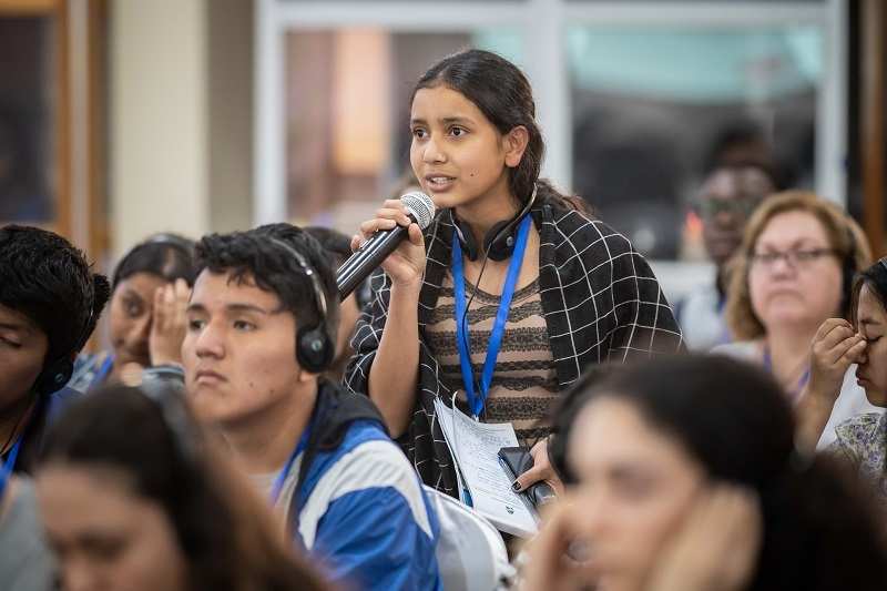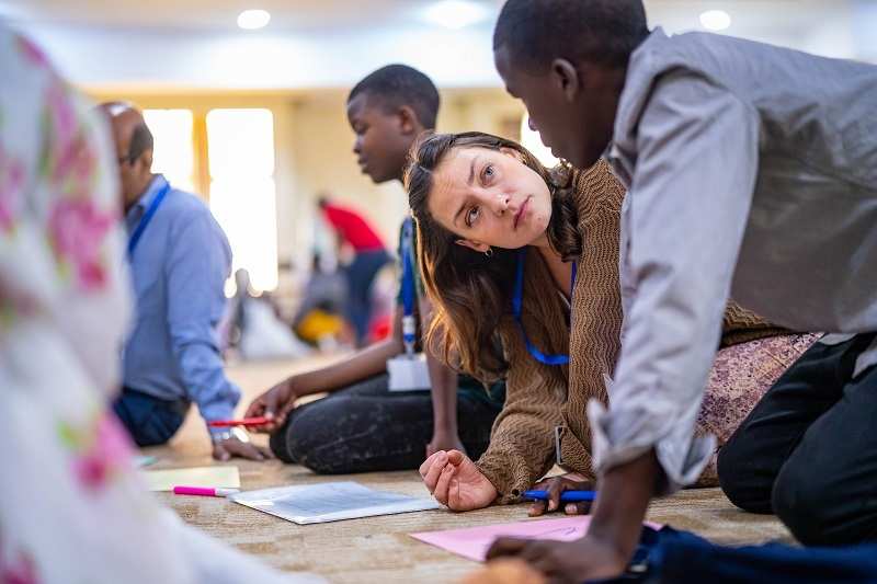 Auch Looniva ist hoch motiviert und merklich elektrifiziert von der Atmosphäre. „Wir alle sind hier, um etwas zu verändern. Es ist wichtig, dass die Erwachsenen unser Leben verstehen. Nur so können wir nachhaltig unsere Situation verbessern“, erzählt sie mit strahlenden Augen, bevor sie eilig zu ihrem ersten Workshop aufbricht. So wuselig es in den Pausen ist, so konzentriert ist die Arbeitsatmosphäre in den Workshops. Es mag im ersten Moment überraschen, aber es wird nicht nur über Kinderarbeit diskutiert. Fragen der Inklusion, Diversity (Vielfalt), mentale Gesundheit und der Klimaschutz sind weitere wichtige Themen. „Ich muss immer weitere Wege laufen, um Wasser zu holen. Dadurch verpasse ich die Schule“, schildert ein Jugendlicher aus Kenia. Die anderen Workshop-Teilnehmenden hören zu, geben Rat, erklären die Auswirkungen des menschengemachten Klimawandels auf ihren Alltag.