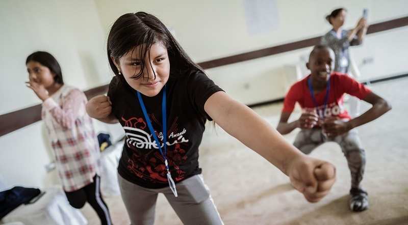 Später findet ein Workshop im Hotelflur nebenan statt. Es ist ganz still, alle liegen auf dem Boden, als würden sie schlafen, bis ein Jugendlicher aufsteht und pantomimisch seinen Arbeitsalltag auf dem Zuckerrübenfeld darstellt. Auch Looniva ist hier dabei. „Wir haben keine Lust mehr, für die Politiker zu singen und zu tanzen und uns anschließend nur leere Worte anhören zu müssen. Wir wollen, dass unsere Stimmen gehört werden“, flüstert sie, um den Theaterworkshop nicht zu stören. „Ich lerne hier neue kreative Ausdrucksformen, die ich zu Hause mit meinem Komitee teilen kann.“
